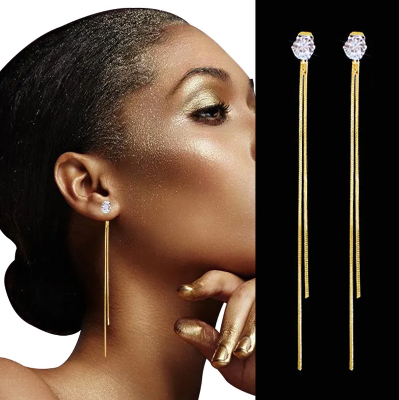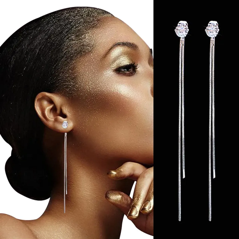Women Earrings Long Crystal Tassel Dangle Earrings for Women Wedding Drop Earring Elegant Jewelry Valentine's Da
